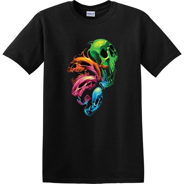 Compre Disenos Personalizados Camisas De Manga Corta Con Estampado De Neon Color Craneo Camiseta De Fusion De Craneos Distorsionados Para Hombres O