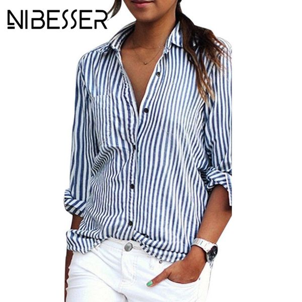 Compre Nibesser 2018 Camisas De Rayas Para Mujer Estilo Coreano De Primavera Ropa De Manga Larga Para Mujer Blusa Azul Casual Camisas Blusa Top Plus