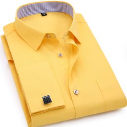 Mens Mancuernas Francesas Camisas De Manga Larga Negro Blanco Azul Amarillo De La Solapa De Negocios Camisa De Vestir Apta Banquete De Boda De Los