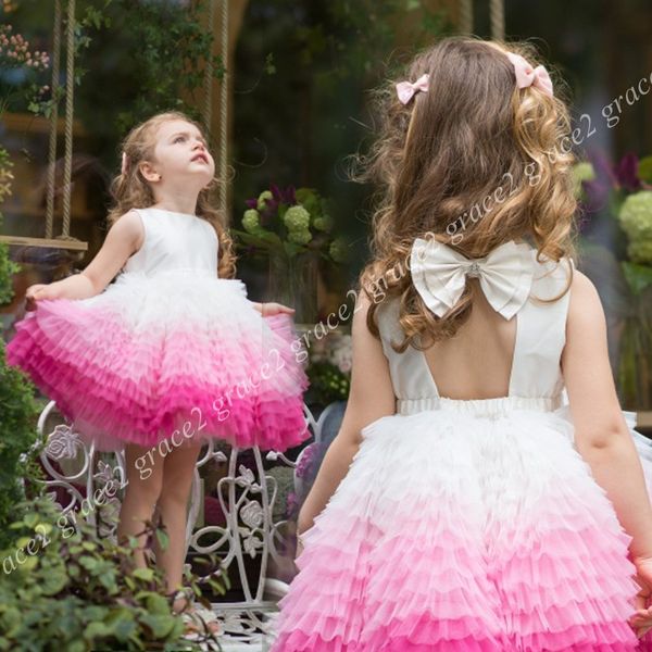 Compre 2018 Ins Ombre Vestidos Para Ninas De Flores Con Volantes Falda Ojo De La Cerradura Atras Cuadros Reales Princesa Vestido Para Ninas Pequenas
