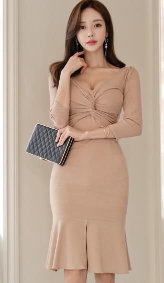 Compre 2019 Version Coreana De La Moda De Primavera V Cuello De La Cintura Adelgazante Paquete Cadera Vestido De Cola De Pescado A 27 14 Del