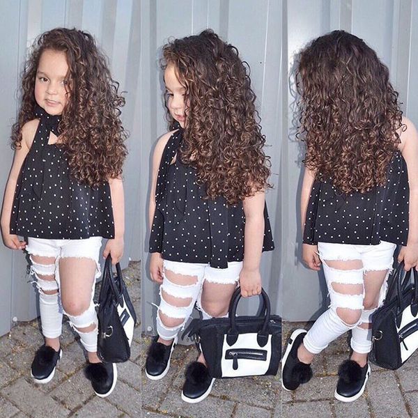 Compre 2018 Ropa De Verano Para Ninos Conjunto Trajes Ropa Casual Para Ninas Moda Dot Wrapped Chest Top Pantalones Blancos Diadema Ropa De Ninos