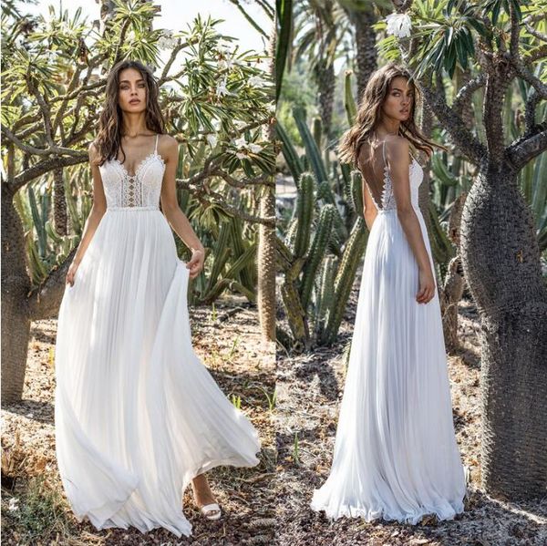 Compre Vestido De Playa Para Mujer Blanco Con Cuello En V Correa De Espagueti Vestidos De Noche De Boda A 14 07 Del Q546333490 Dhgate Com