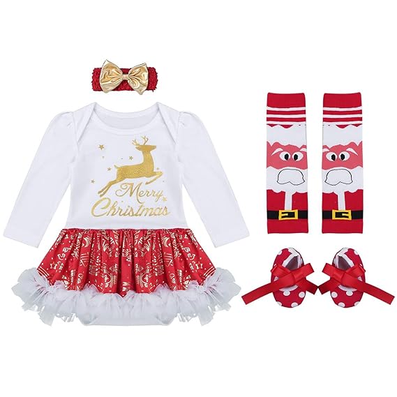 Muqgew Bebe Infantil Ropa De Navidad 4 Piezas De Manga Larga