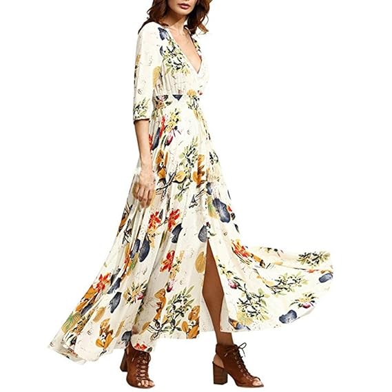 Vestido De Verano De Mujer Dragon868 2018 Bohemia Floral Beach Party Vestido Largo Casual Para Ninas Mujeres