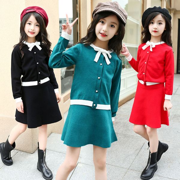 Compre Traje De Sueter De Las Ninas Otono Invierno 2018 Moda Ninas Cardigan Camisa Arco Escudo Falda 2 Unids Conjuntos De Ropa Para Ninos 5 6 8 9 10