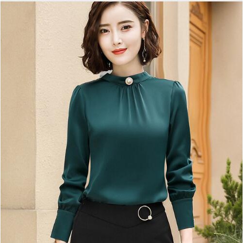 Green High Quality New Fashion Long Sleeve Chiffon Blouse Plus Size Blusas Mujer De Moda 2019
