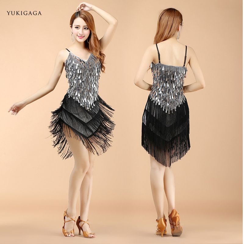 Compre Vestidos De Baile Latino Falda De Baile De Salon Con Flecos Vestido De Lentejuelas Con Borla Lirica Vestido De Tango De Moda Para Mujer A