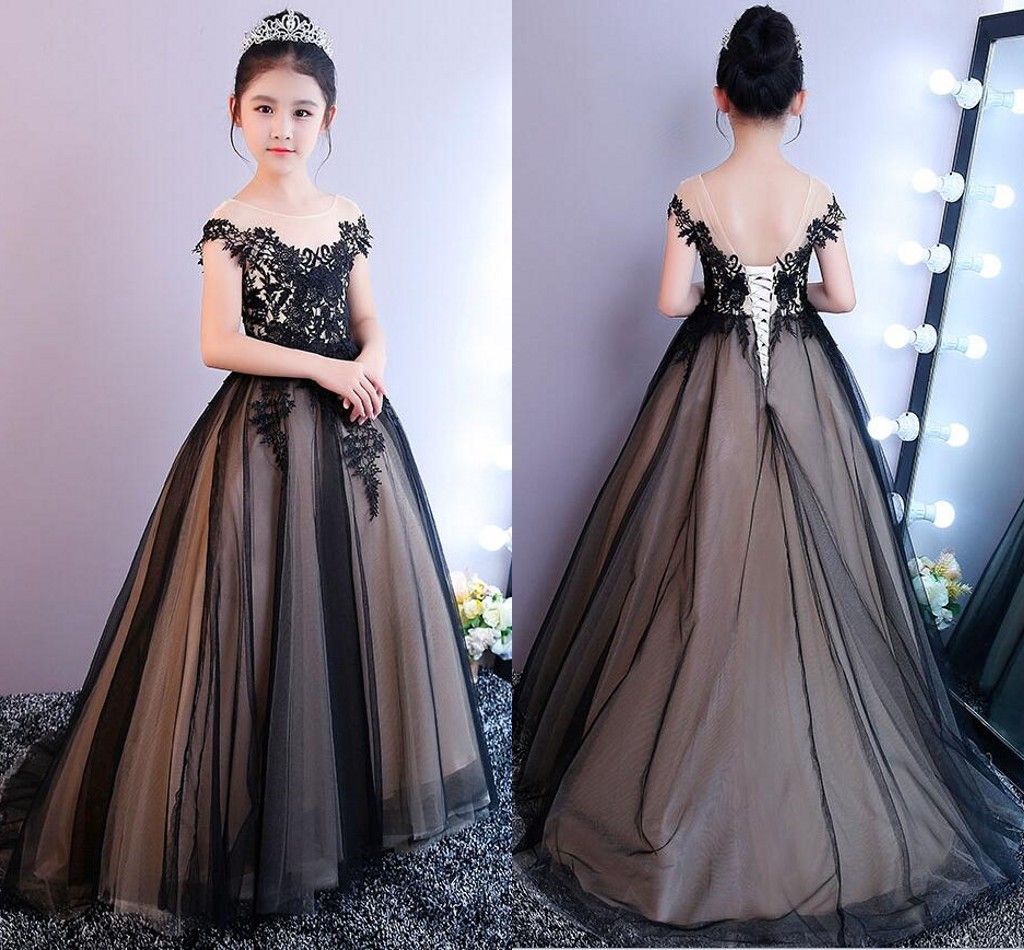 Compre Vestidos Elegantes De Color Negro Para Ninas 2018 Corse Con Cordones Volver Apliques De Encaje Vestidos De Primera Comunion Para Ninas Vestidos