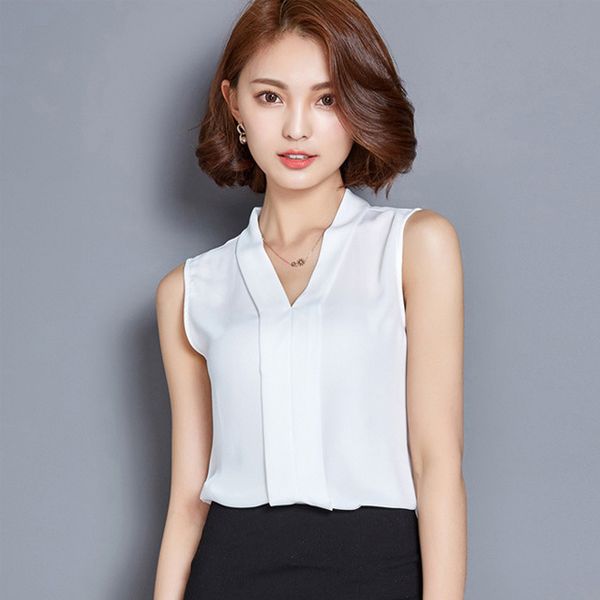 Compre Estilo Coreano Moda Mujer Blusas De Gasa Tops De Manga Corta Para Mujer Sin Mangas Camisa Blanca Blusas Femininas Tallas Grandes Ropa De Mujer