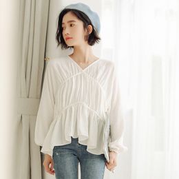 Shengpalae 2019 Nuevo Primavera Blusa Blanca De Manga Larga