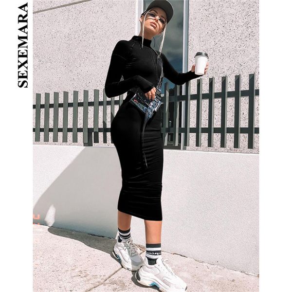 Compre Sexemara Cremallera Frontal Vestido Manga Larga Negro Bodycon Tight Fitted Vestidos De Mujer Otono Invierno 2018 Moda Streetwear C83 Ad93 A
