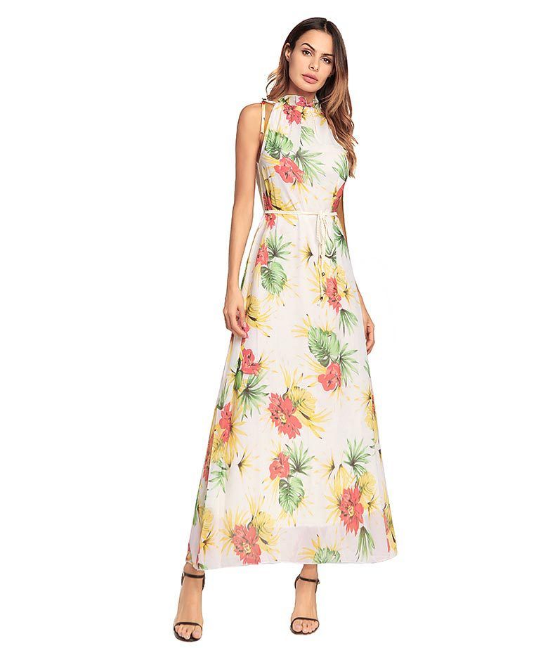 Compre 2018 Primavera Verano Mujeres Estampado De Flores Gasa Vestidos Largos Mujeres Bohemia Sin Mangas Vestido Halter Blanco Negro Fuschia Color