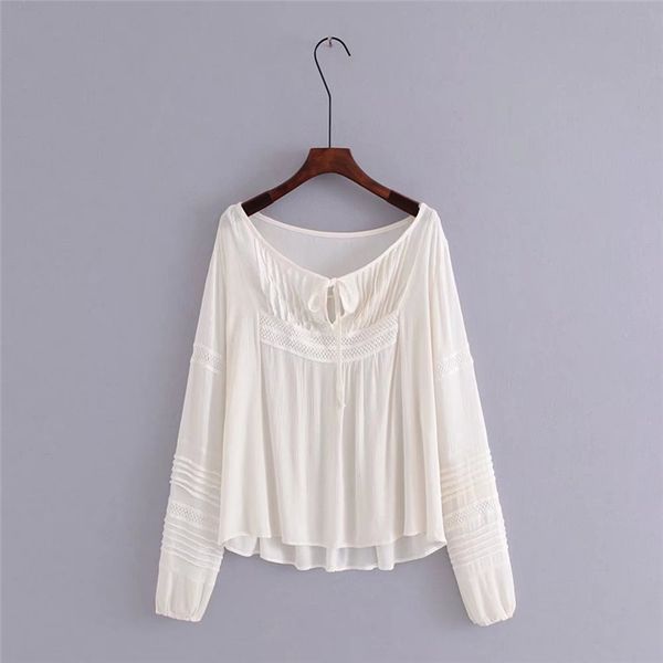 Compre Blusa De Encaje Bordado Blusa Mujer Tops O Cuello Con Cinturon Blusas De Mujer Sueltas 2018 Primavera Nueva Moda Chemise Femme Es A 14 54 Del