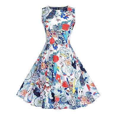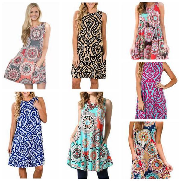 Compre Vestidos Vestido De Verano Para Mujer Vestido De Senora Casual Sin Mangas Vestido De Cuello Redondo Moda Blusas Sueltas Ropa De Mujer Vestidos
