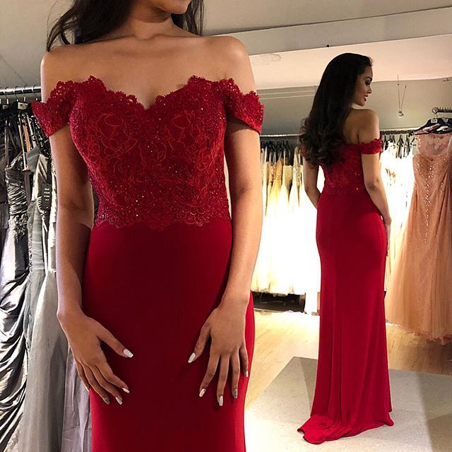 Vestidos Largos De Fiesta Vestidos Largos De Noche 2019 De Los Hombros Baratos Vestidos De Noche Rojos Hechos En China