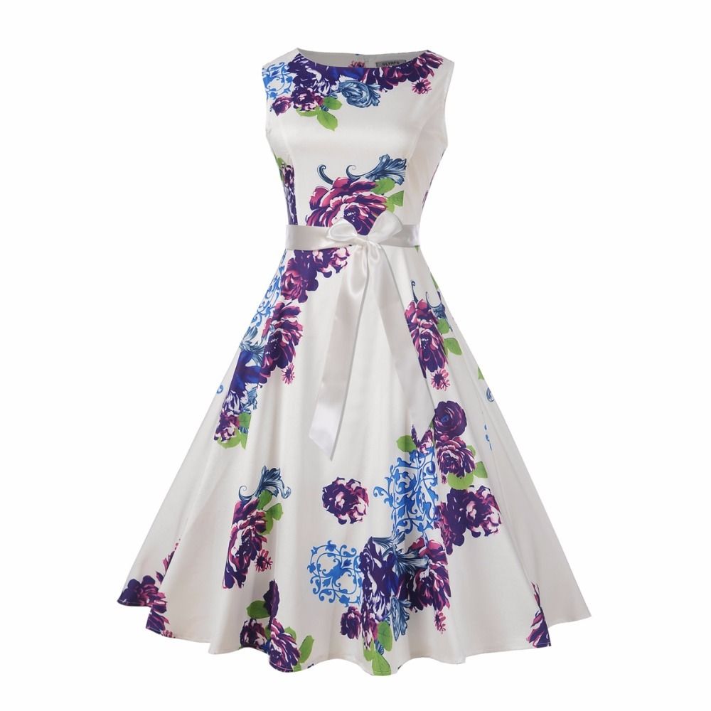Spring Summer 2018 Fashion Women Dress O Neck Sleeveless Big Swing Print Vintage Dress Sashes Tighten Waist Party Dress Vestidos Cheap Prom Dress